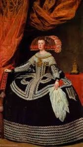 It was quite by chance that I came across Marianna of Austria. She was born in Vienna at the court of her paternal grandfather the Habsburg Emperor, Ferdinand II. Her father, who would become Emperor in 1637, was as yet only the King of Hungary and Bohemia, and was away for most of his wife's pregnancy campaigning in the Thirty Years' War. As a child, she was engaged to her Spanish Habsburg first cousin Baltasar Carlos, Prince of Asturias, but when he died aged 16 in 1646, King Philip IV of Spain was left without a male heir and Maria-Anna without a fiancé. In 1649, the king married his 14-year-old niece himself. Although known for being cheerful as a young girl, after her wedding to her uncle she became 'cold and bad-tempered'.